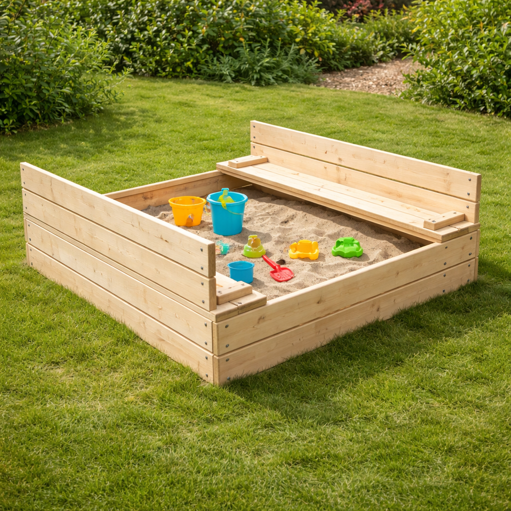 🏖️ Arenero de Madera con Tapa y Asientos